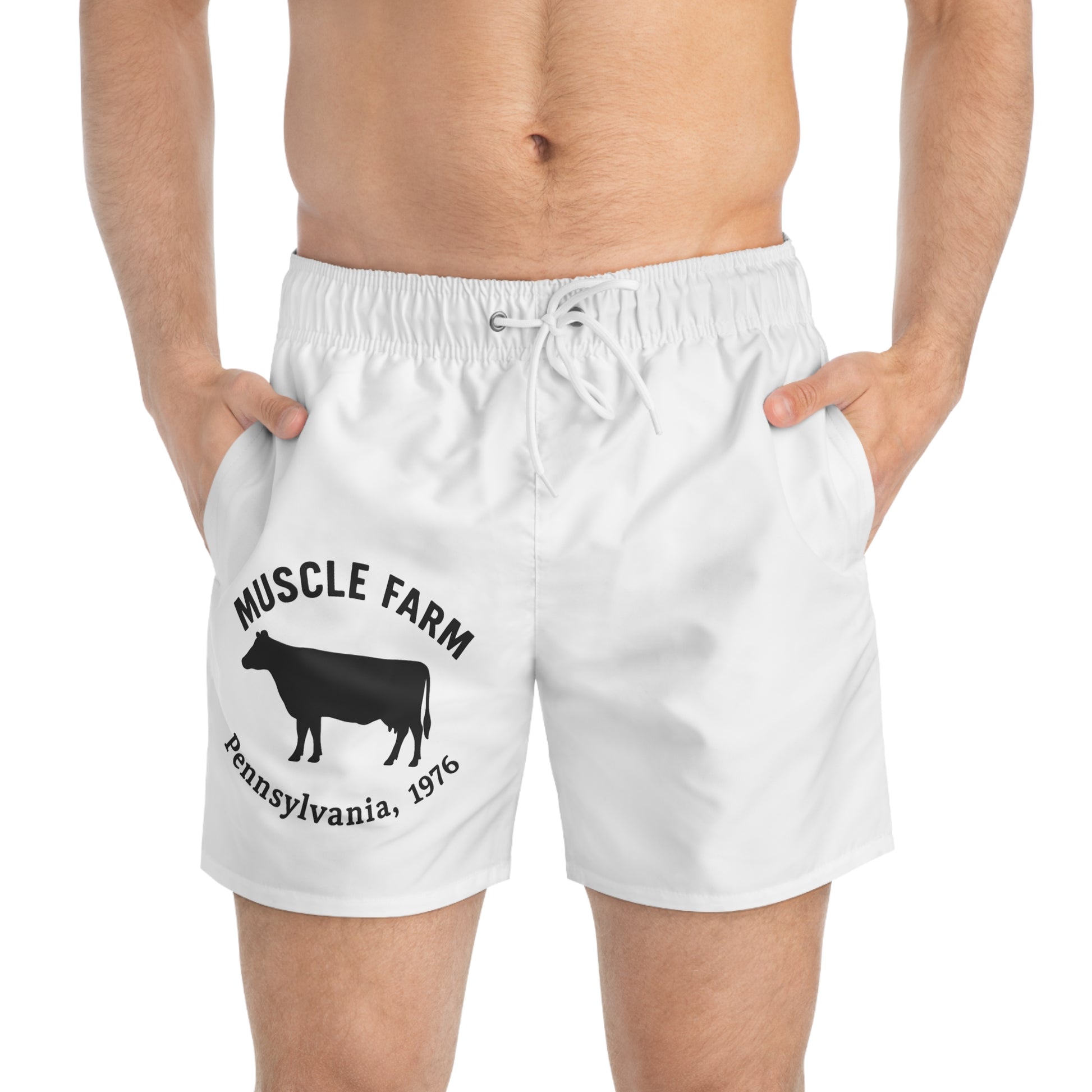 Muscle Farm Swim Trunks, Fun Beach Shorts, Summer Pool Wear, Vacation Swimwear, Men's Athletic Shorts